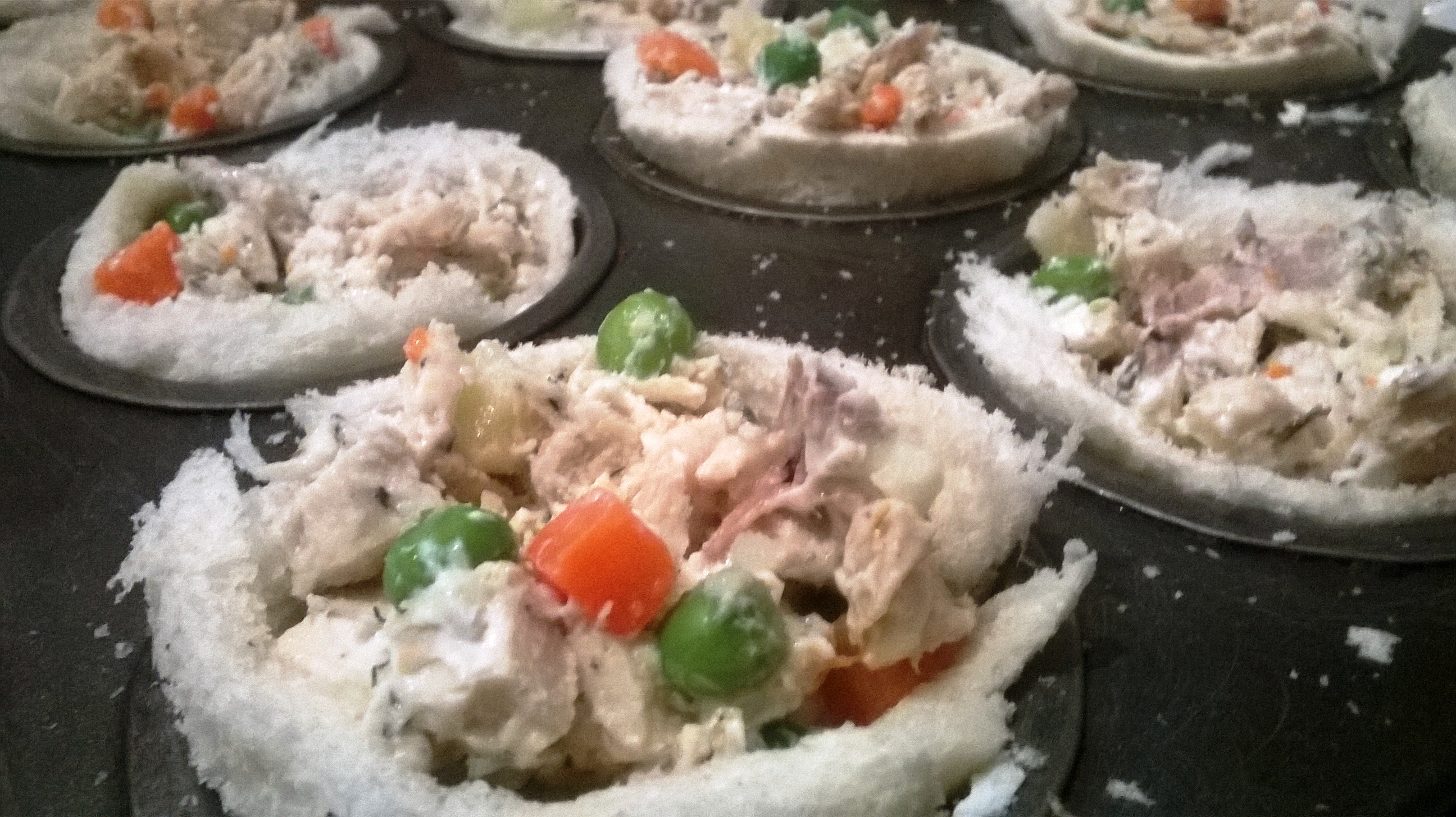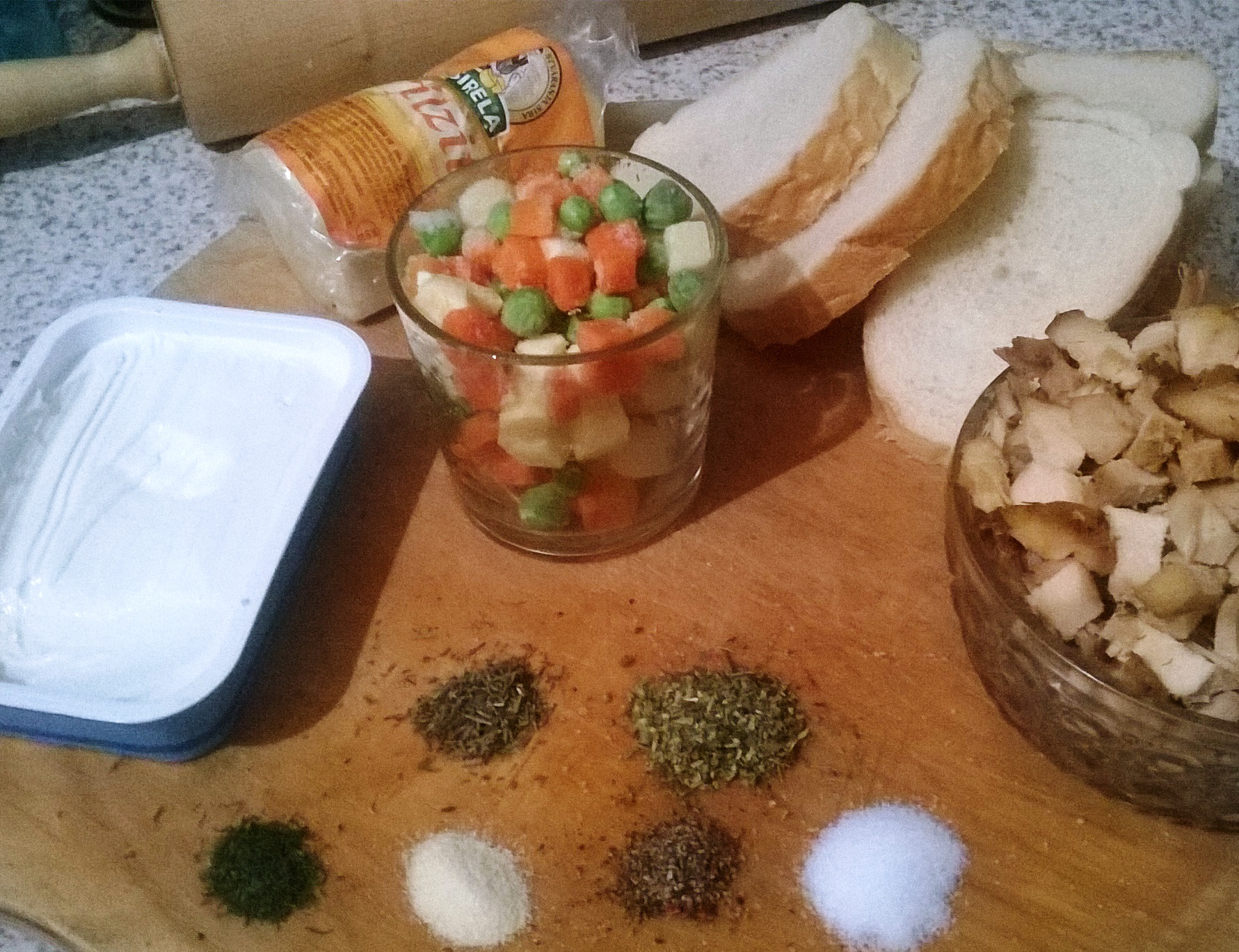 Kruh izrezati na šnite i odvojiti koru te valjkom istanjiti sredinu i čašom izrezati podlogu za kalup. Kalup lagano namazati maslacem te ga obložiti kruhom. Staviti kuhati povrće nekih 10ak minuta. Dok se povrće zgotovi vi piletinu usitnite i sjedinite sa sirnim namazom i začinima. Povrće isključimo i “šokiramo” hladnom vodom kako bi ga mogli odmah dodati piletini. Lijepo sjedinimo smjesu i napunimo kruh. Stavimo u pećnicu koju smo prethodno zagrijali na 180 stupnjeva i pečemo dok se sir lijepo ne istopi a kruh dobije lijepu zlatnu boju. Poslužiti toplo :)