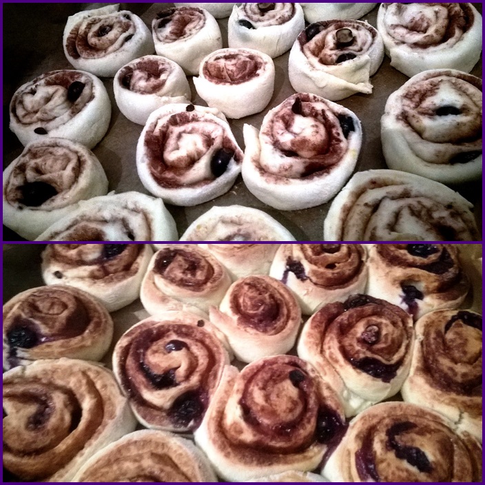Slagati ih u pladanj za pečenje te pustiti 20ak minuta da “odmore”. Pećnicu zagrijati na 190 stupnjeva te nakon navedenih 20 minuta staviti pužiće na pečenje. Obzirom da borovnice puste nešto soka potrebno ih je peči dok ne dobiju malo jače zlatnu boju kako bi se pravilno i u potpunosti ispekli.