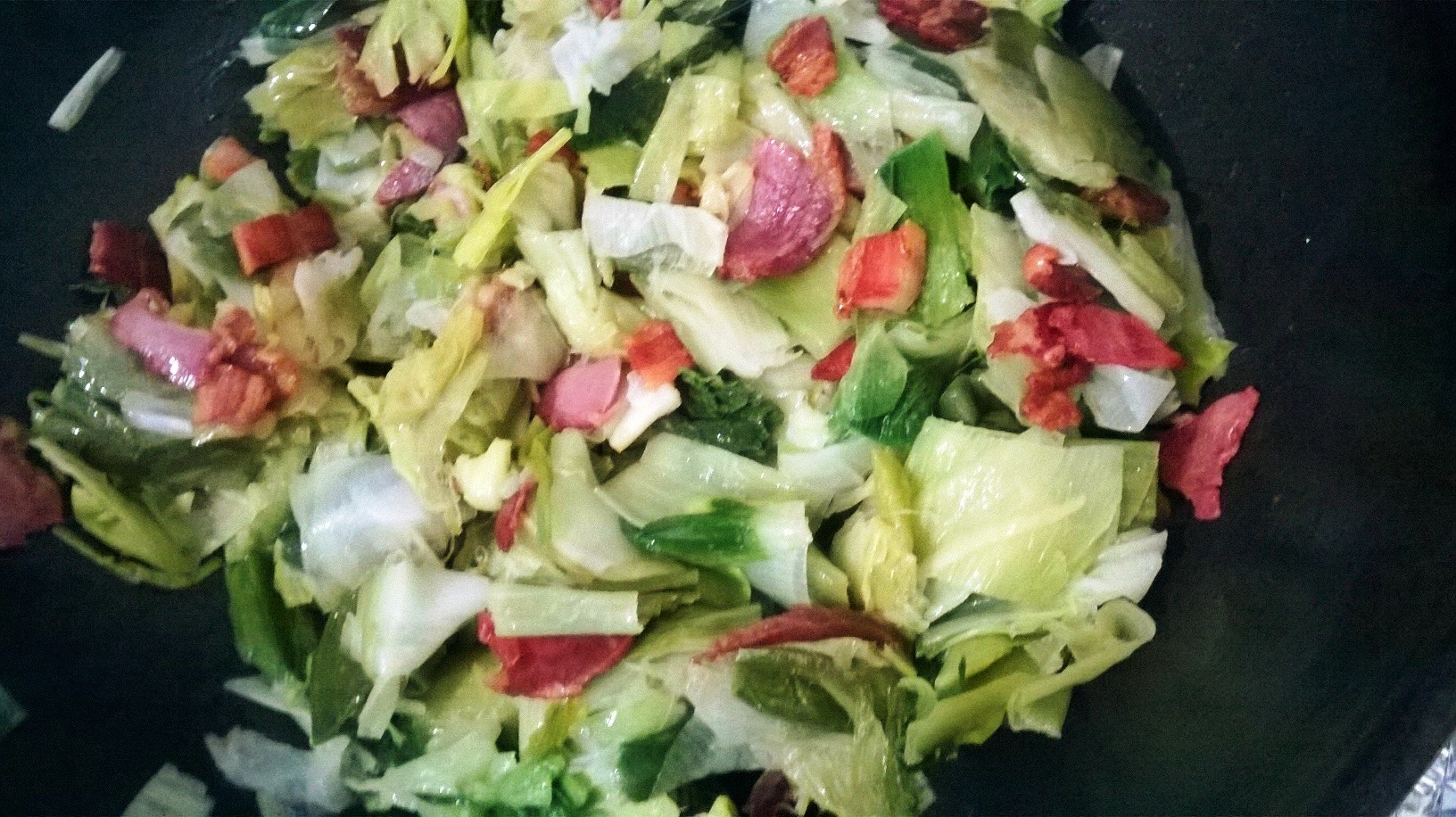 Na tavi popržiti nasjeckani špek te mu dodati poriluk i dinstati par minuta.