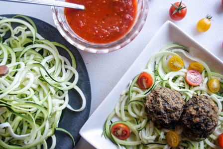 Ali da se vratim ja na recept koji danas serviram online, ideja je pronađena na blogu: skinnytaste.com te uz neke izmjene koje su meni više odgovarale pišem Vam o bezmesnim mensim okruglicama koje su poslužene uz sirove rezance od tikvica i domaću šalšu od svega 3-4 sastojka.