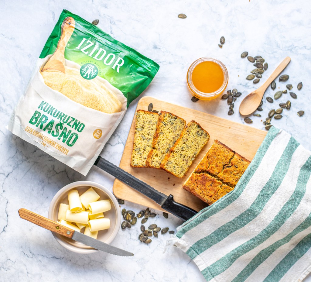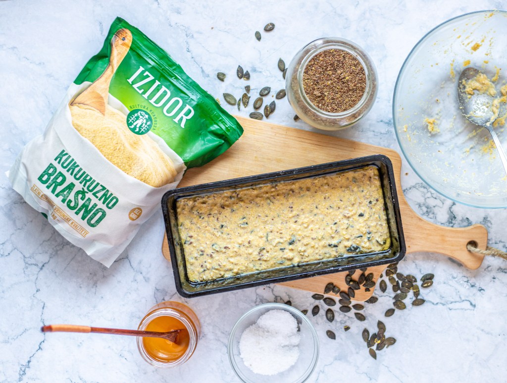 Danas vam u suradnji s novim domaćim brendom “Izidor” donosim recept za jednostavan kukuruzni kruh kojeg sam obogatio bučinim sjemenkama. Ovo “kukuruzni” mislim doslovno jer sam od brašna koristio samo čisto kukuruzno brašno čime sam ujedno dobio bezglutenski finalni proizvod.