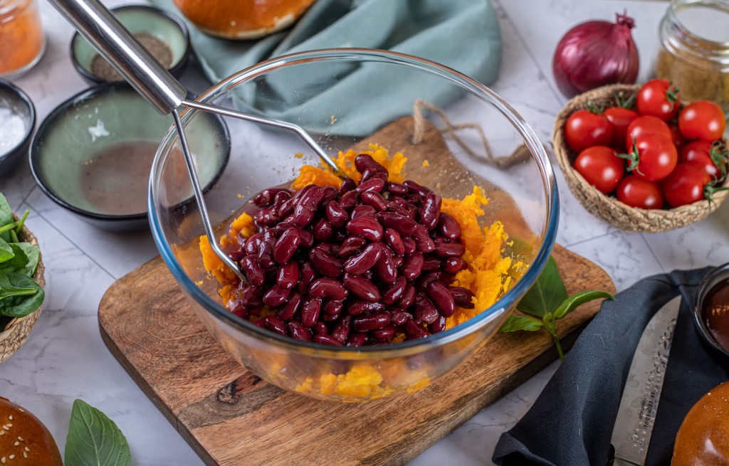Kada pričamo o bezmesnim burgerima danas postoji stvarno jako puno kombinacija, mnoge od njih sam već i isprobao a neke uvijek nove rado uvrstim na svoju listu za isprobavanje. Danas je tu kombinacija koja je nepogrešiva: grah, batat i riža. Umak po vlastitom izboru, jednostavna svježa i hrskava salata te pecivo su sastojci koje gotovo svaki burger sadržava pa sam se i ja držao toga kod pripreme. Sastav “patty-a” sam možda na prvu ostavlja dojam premekanog ali uz malo maslinovog ulja i pečenja u pećnici ćete dobiti idealan omjer hrskavosti izvana i sočnosti iznutra.
