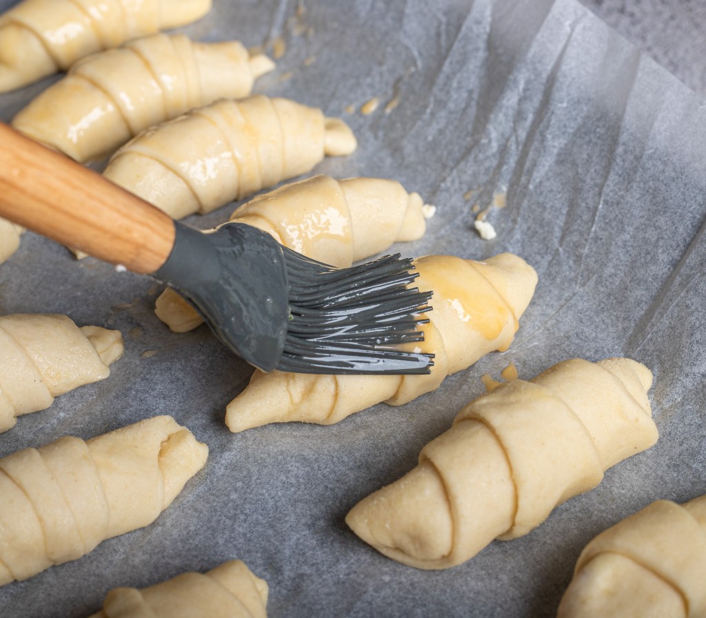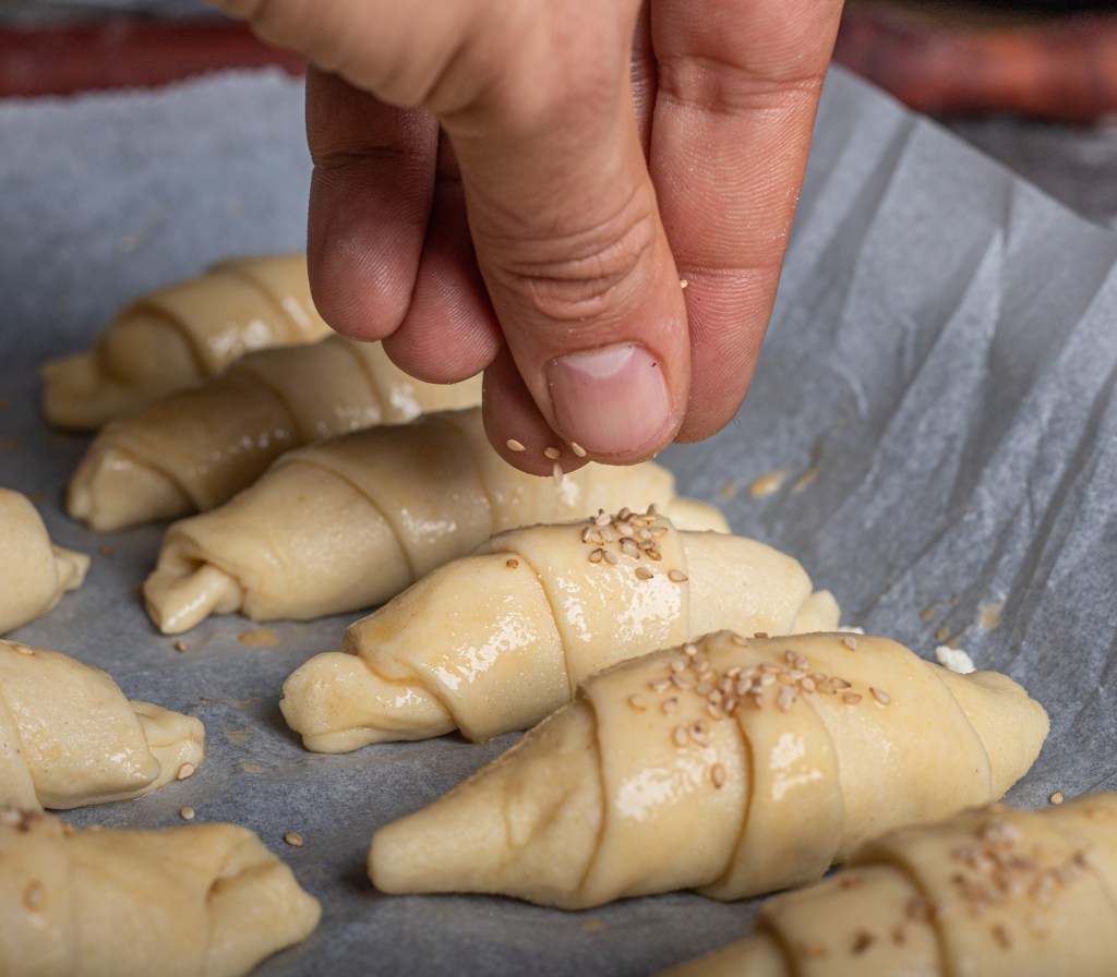 Premazati pripremljene kiflice s razmućenim jajetom te posuti sa sezamom.