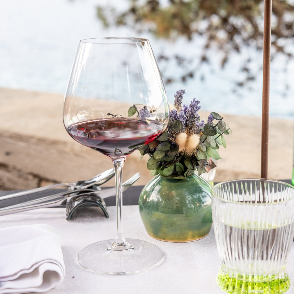 Lista vina je lokalna, organska, puno malih vinara s Pelješca i Korčule. Idealno za probati nešto novo i pitati konobara što bi ti preporučio uz jelo. Imaju i koktele, ali vino ovdje stvarno vodi glavnu riječ.