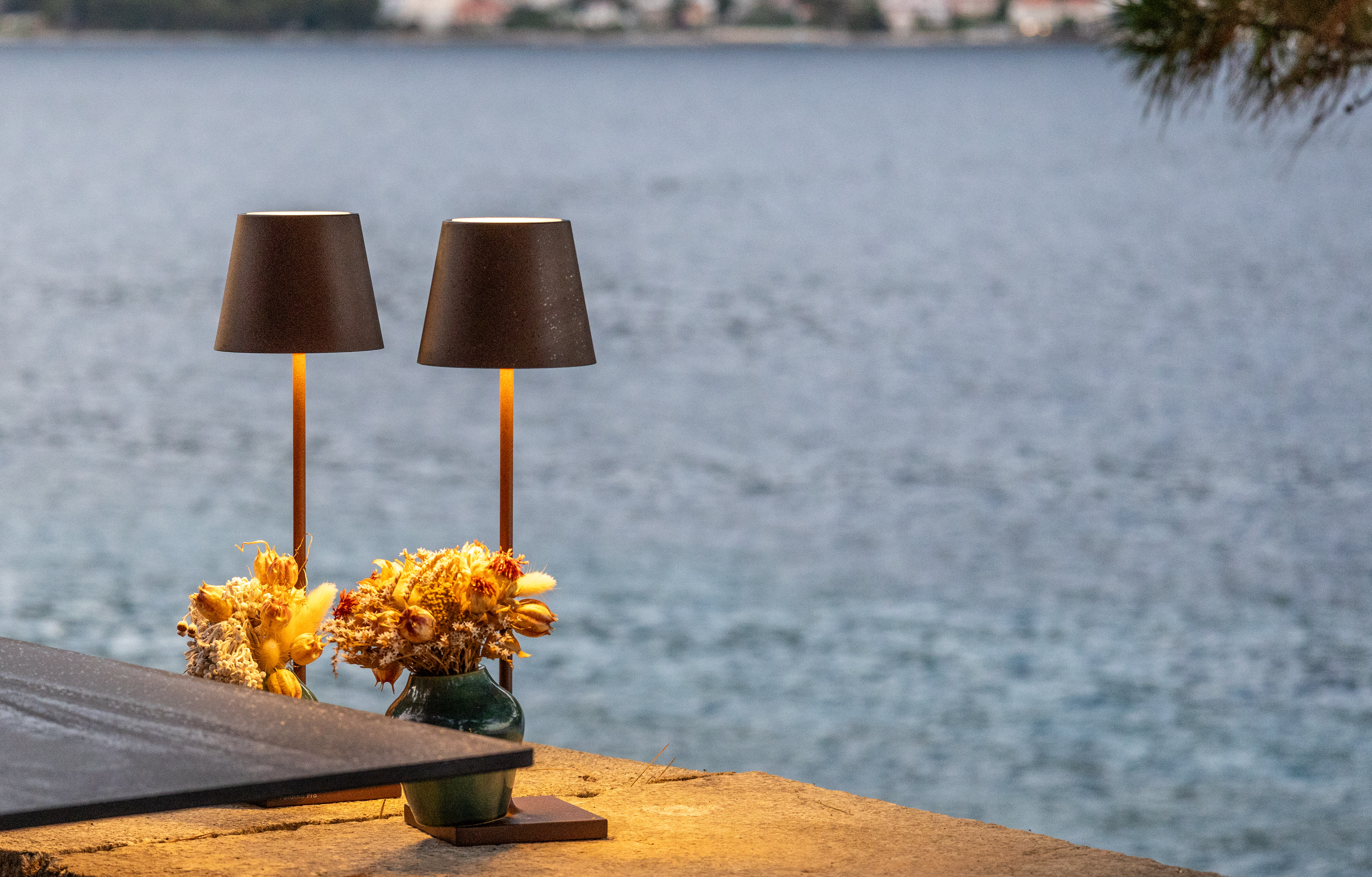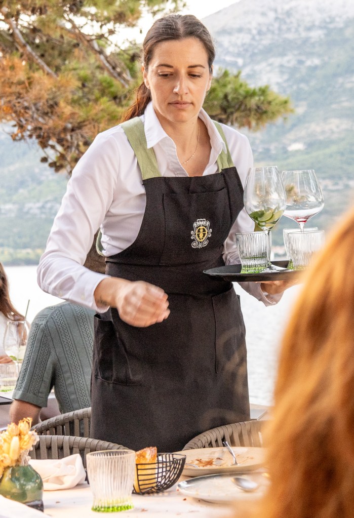 Pogled puca na more, stolovi su tik uz kamene zidine stare Korčule, a unutra kombinacija modernog dizajna i šarma juga. Konobari su opušteni, znaju što rade, ali bez prenemaganja.